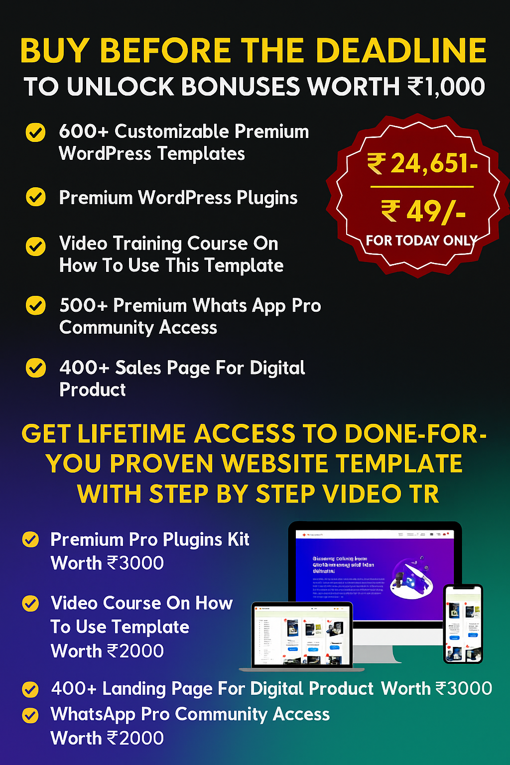 🔥 Don’t miss this once-in-a-lifetime offer. Grab the Website Bundle Kit today for just ₹49 and unlock Bonuses worth ₹10,000 FREE!